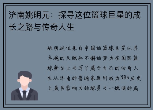 艾伦姚明作为篮球界的传奇人物,不仅在球场上创造了辉煌的成就,也在中美文化交流中扮演了重要角色。本文将从四个方面对艾伦姚明的传奇之路进行详细探讨,分别是他的职业生涯、对中国篮球的影响、中美文化交融以及他在退役后的贡献。通过这些方面,我们可以更全面地理解这位伟大运动员如何跨越国界,在篮球领域和文化交流中留下深远的印记。 1、职业生涯与成就 艾伦姚明于2002年以状元身份进入NBA,开启了他的职业生涯...