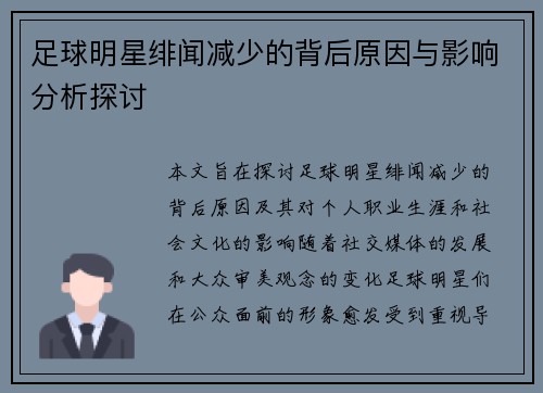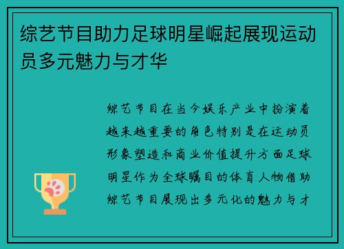 在当今的体育文化中,足球作为全球最受欢迎的运动之一,吸引了无数球迷的关注与热爱。而足球明星壁纸则成为了展示这种热情与魅力的一种独特方式。本文将围绕“足球明星壁纸精选带字幕展示让你感受足球魅力与激情的完美结合”这一中心主题进行详细阐述。文章将从四个方面探讨这一话题,包括足球明星的影响力、壁纸设计艺术、字幕展示的重要性以及如何通过这些元素激发观众的热情。通过对这些方面的深入分析,我们将更加全面地理解足...
