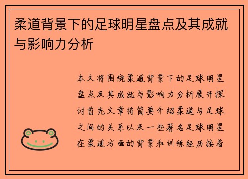 在当今的足球世界中,许多年轻球员怀揣着梦想,希望能够成为下一个足球巨星。然而,这条追梦之路并不平坦,充满了挑战与困难。为了激励这些年轻球员,一些足球明星通过写信的方式分享他们自己的奋斗故事。这些信件不仅传递了对梦想的执着,也包含了在职业生涯中遇到的挫折与成功的真实经历。从个人成长、心态调整、团队合作以及应对压力四个方面,我们将深入探讨这些足球明星寄语中的宝贵经验和智慧,帮助年轻球员更好地理解什么是...